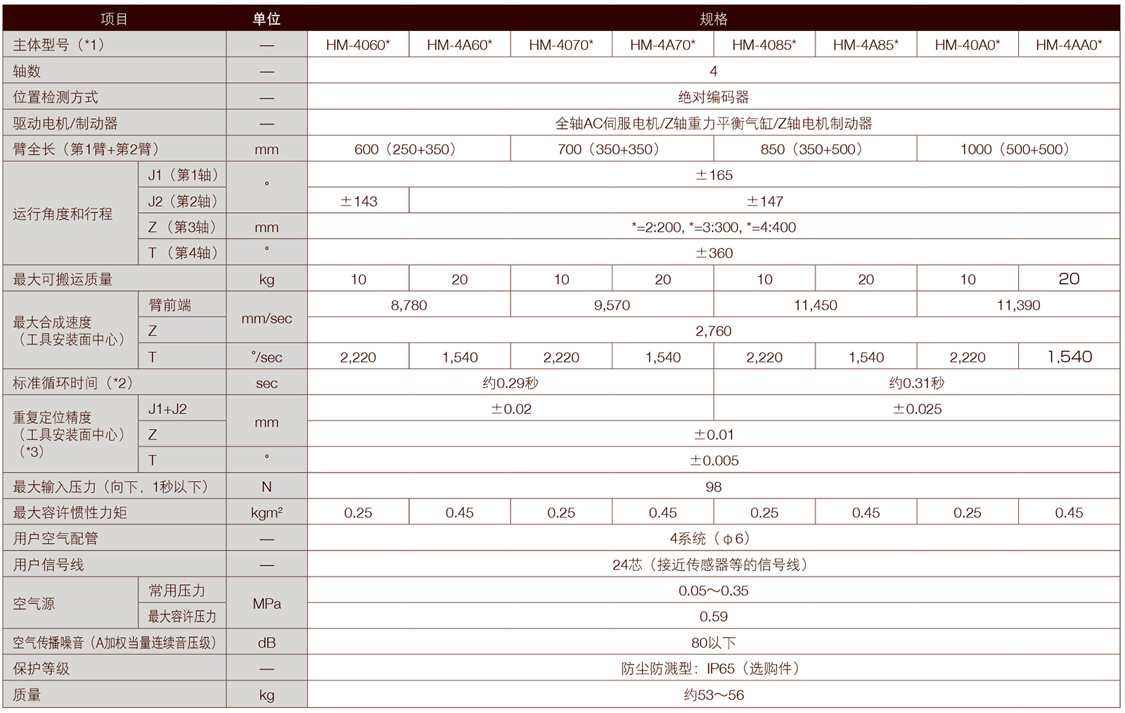 *4:Z(第3轴)100mm、150mm为特殊规格。有关详情请另行查询。