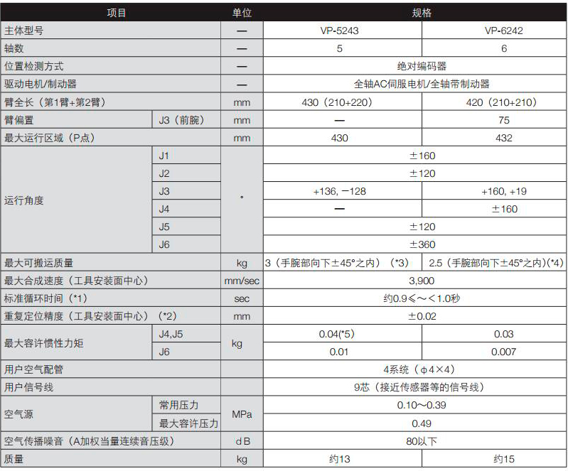 *3:手腕部向下超过±45°时,最大可搬运质量为2.5kg。