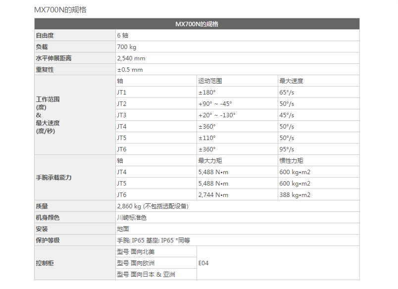 MX700N的规格: