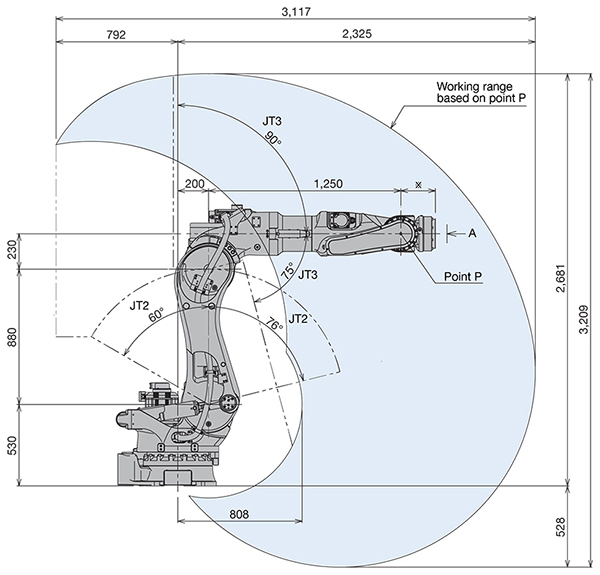 伸展距离 2,325 mm