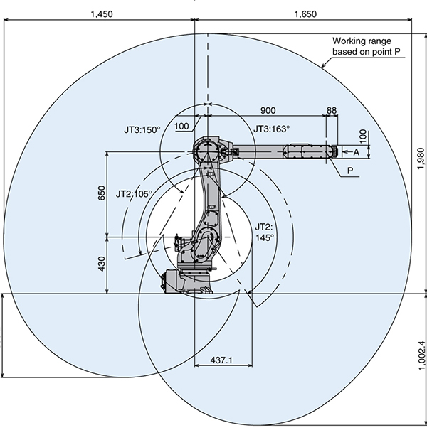 水平伸展距离 1,650 mm