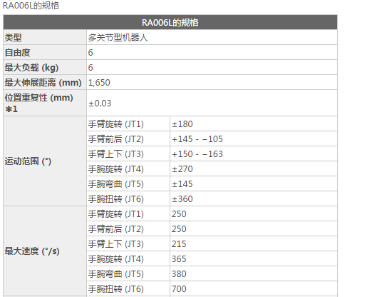 RA006L的规格: