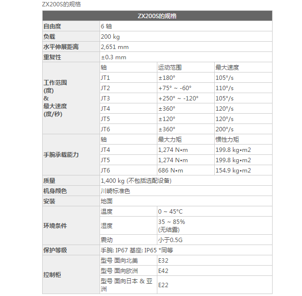 ZX200S的规格: